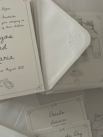 This is the full works: bespoke design, high-quality production, and delivery straight to your door. I take care of every detail so you can focus on the fun stuff. Whether it’s invitations, on-the-day stationery, or special finishing touches, everything will arrive beautifully packaged and ready to go.